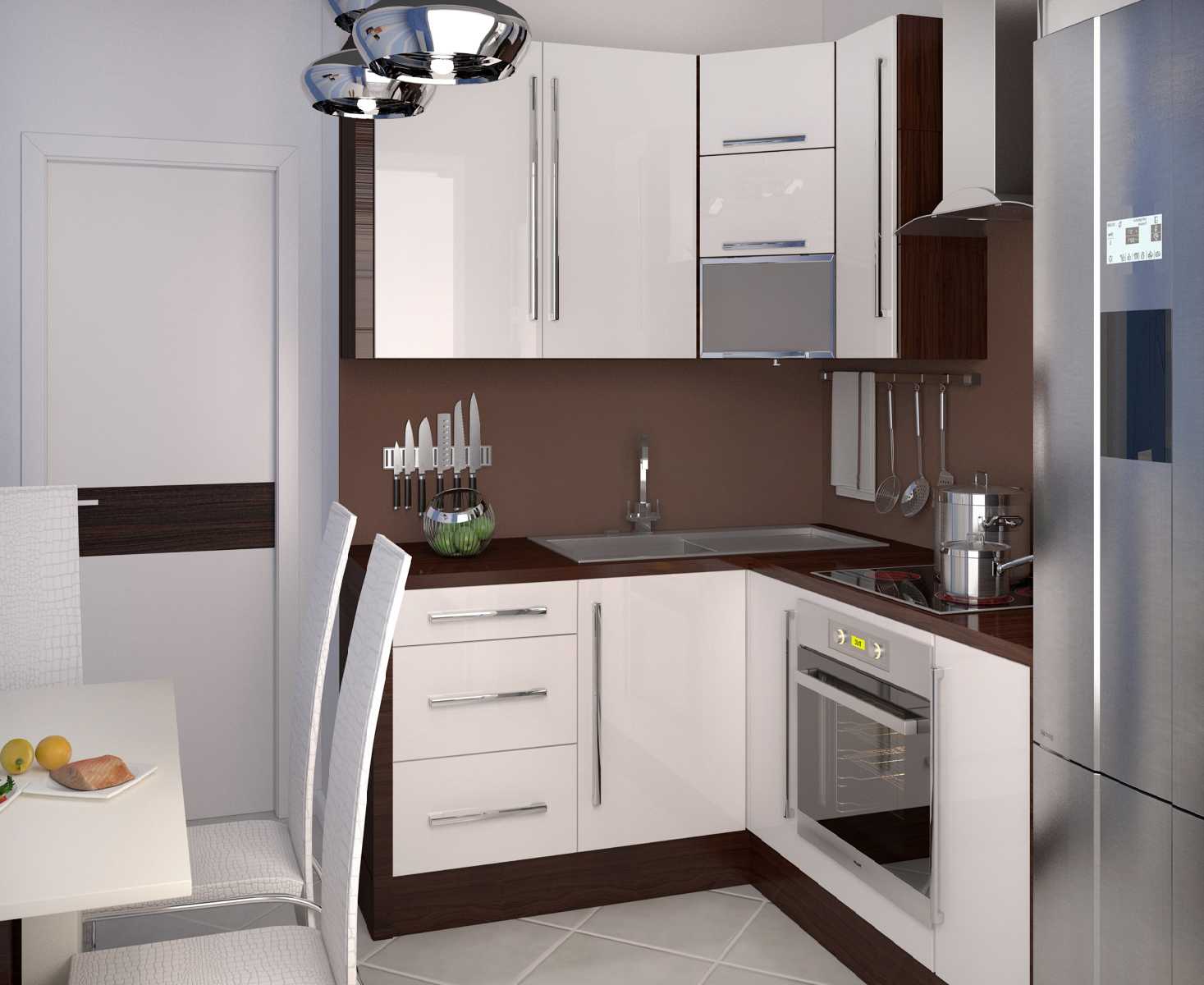 Угловая планировка наиболее оптимальна для маленькой кухни.