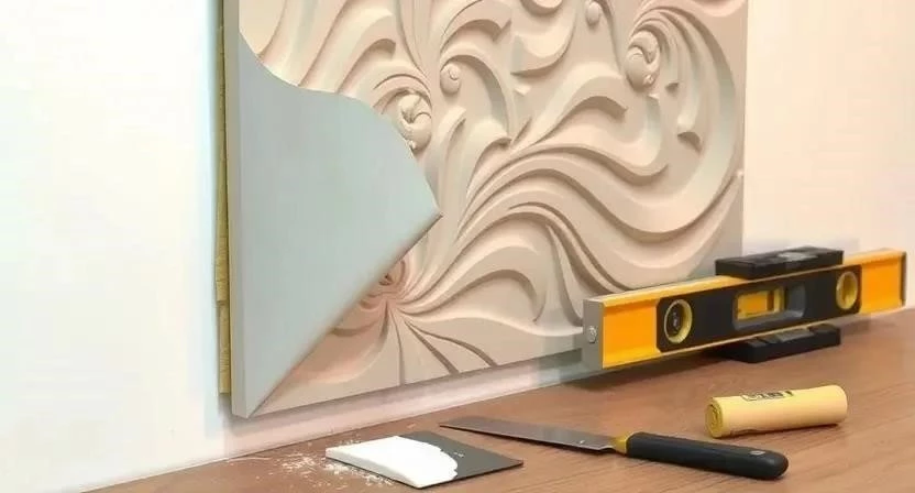 3. Нанесение клея: Нанесите клей на обратную сторону элемента рельефа или на стену. (Время: 15-30 минут)