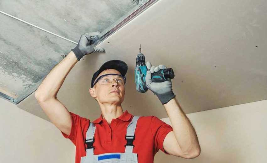 Монтаж потолочного гипсокартона осуществляется с помощью саморезов и шуруповерта.