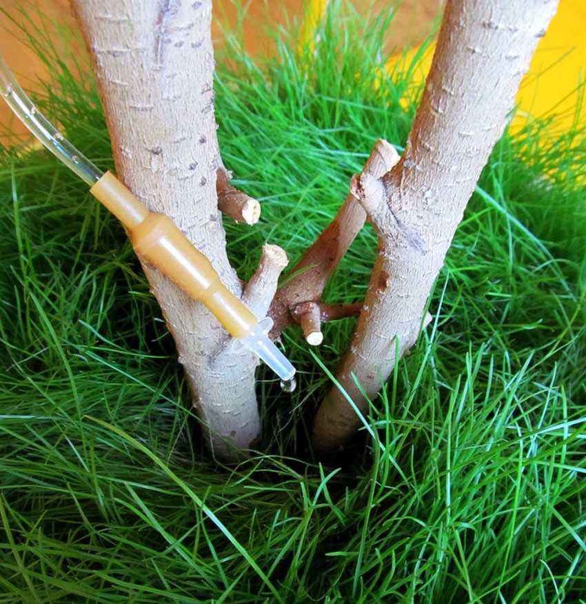 Орошение растений с помощью медицинских капельниц является простым и экономным вариантом.