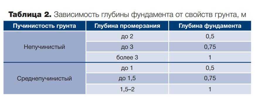 Определяя, от чего зависит глубина закладки опорных конструкций, следует обратить внимание на климатические факторы: