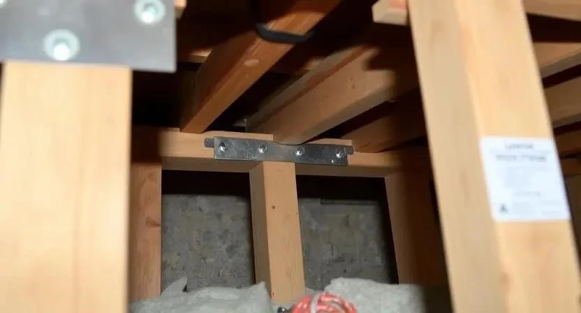 Лаги – основание вашего пола. Если они повреждены, необходимо их укрепить или заменить. Укрепление лаг можно выполнить с помощью дополнительных брусков, прикрепленных к ним саморезами. Если лаги сильно повреждены гнилью, их необходимо заменить. Выравнивание лаг – важный этап, от которого зависит ровность пола. Я использовал уровень и правило, чтобы убедиться, что лаги находятся в одной плоскости.
