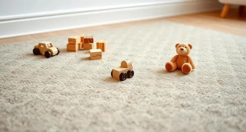 - Игровая зона: ковер, ящики для игрушек, домик или палатка.