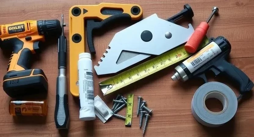 - Дрель или шуруповерт с набором сверл и бит.
