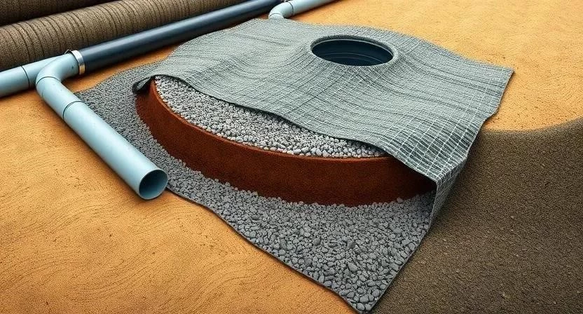 Ответ: Необходимо обеспечить уклон дренажных труб и использовать геотекстиль для предотвращения засорения.