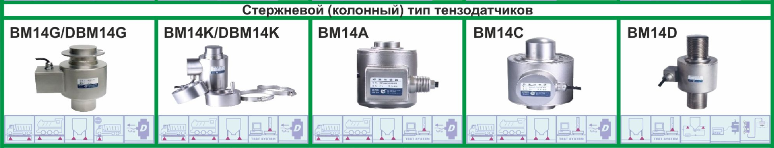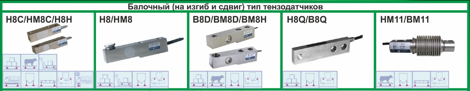 Стержневой тип тензометрических датчиков. Данный тип датчиков применяется для производства и модернизации бункерных, автомобильных, вагонных весов с большой грузоподъёмностью, а также в контрольно-измерительном оборудовании, испытательных стендах.