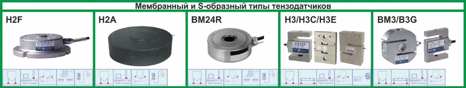 Следующий тип датчиков: мембранный. Он массово применяется при производстве вагонных, бункерных, автомобильных весовых системах. Также мембранные датчики используются в тех весодозирующих системах, где обыкновенные датчики не могут быть внедрены в конструкцию из-за своих габаритных размеров. В процессе взвешивания дозаторов, бункеров и прочих конвейерных весовых систем нашли свое применение S-образные тензометрические датчики. Следует отметить, что такие датчики превосходно подойдут для разрывных машин и испытательных стендов.