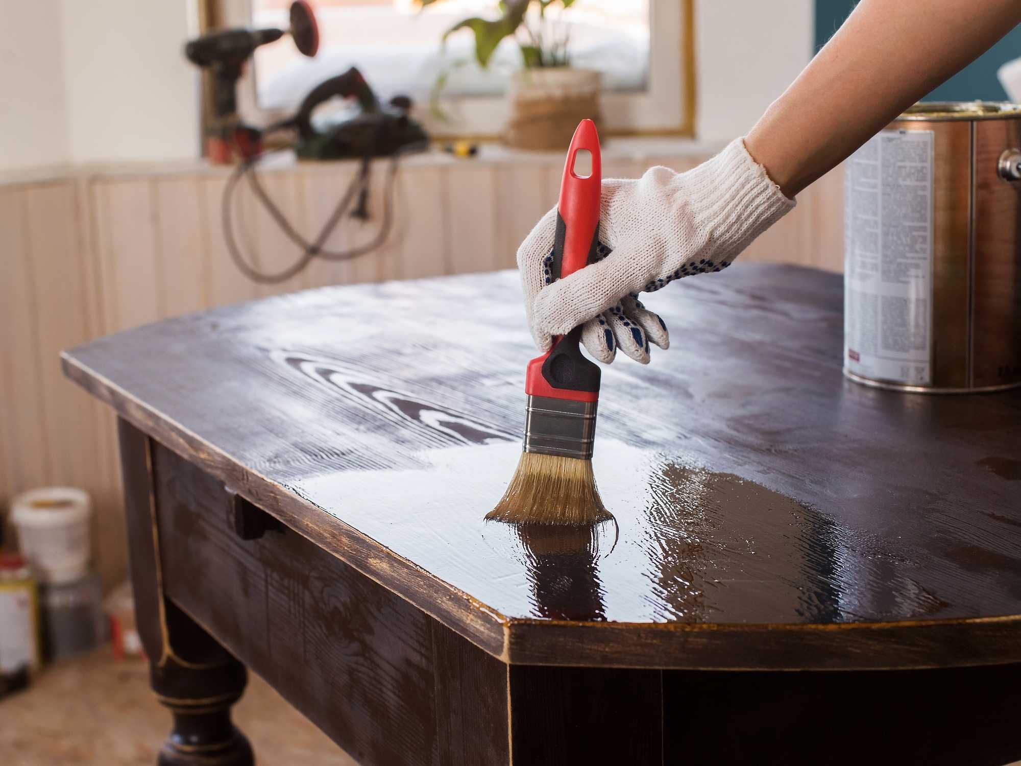 Выбор материалов и рабочего инструмента зависит от конкретного способа восстановления мебели. Для покраски или лакирования изделий понадобится краска выбранного цвета, лак, наждачная бумага мелкой зернистости, респиратор, резиновые перчатки, вода, скотч, лоток для краски, малярная кисть или валик.