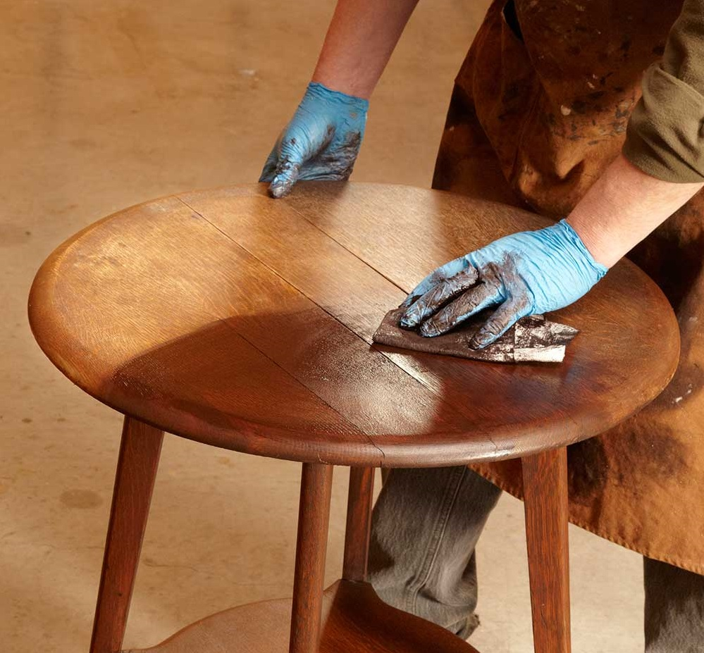 - Готовим специальную мастику (смешиваем растопленный воск и скипидар в соотношении 4:3) и наносим мягкой тканью на полировку.