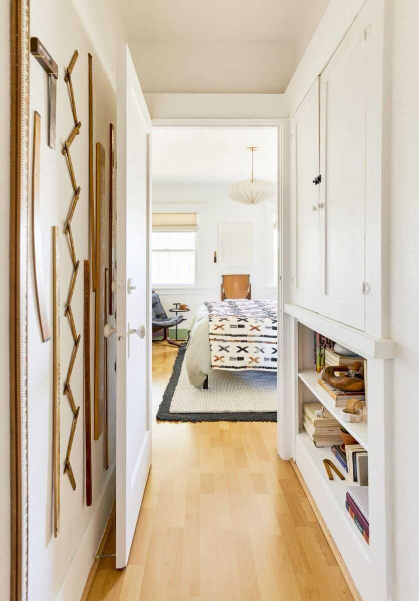 - Открытые полки с приятными сердцу мелочами – характерная черта прованса. Если выбран дизайн спальни с гардеробной, полки спрячутся за раздвижными системами, дверцы стоит задекорировать под старину.