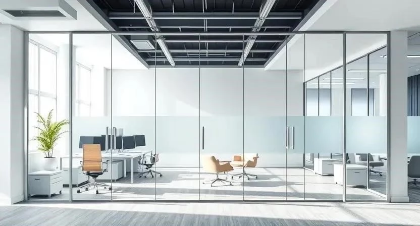 - Офис: Используйте стеклянные перегородки для разделения рабочих зон.