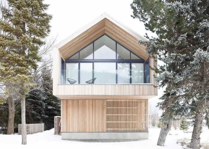 Шале. Компактные жилые строения в стиле шале имеют одну характерную черту – массивность верхнего этажа и изобилие дерева в строительном, отделочном материале. Несмотря на массивность, дизайнерам удается сконструировать небольшие площади так, чтобы они могли использоваться с максимальным удобством. Фундамент часто делается каменным. Обязательно наличие террасы вдоль фасада дома. Актуальная этажность – 1, 1,5 или 2 этажа.
