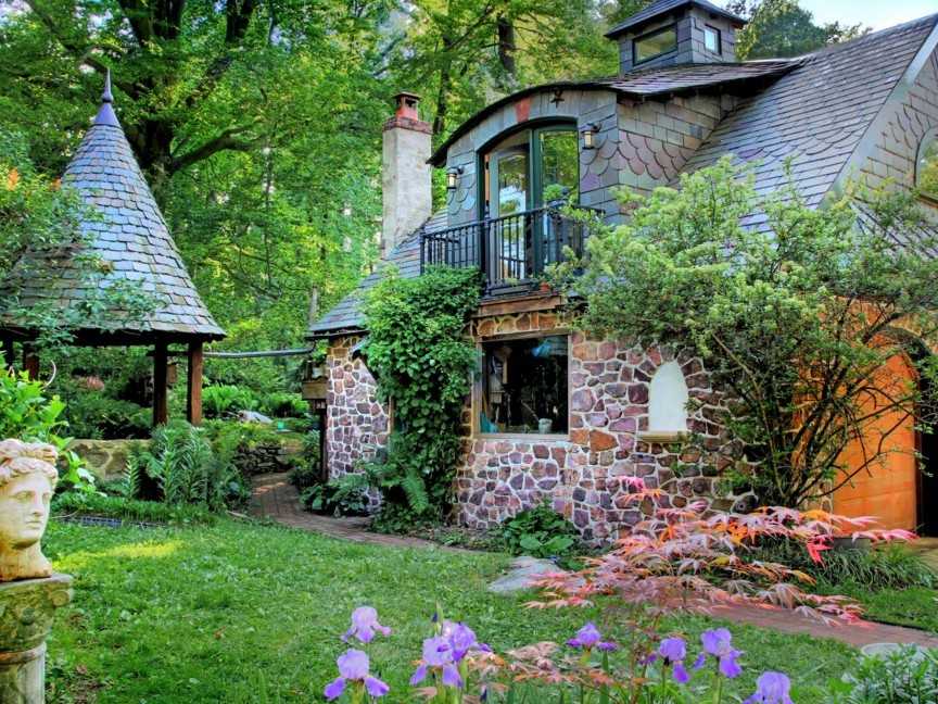 17. Небольшое уютное строение с каменной отделкой выглядит так, как будто его построили из собранного в округе природного материала