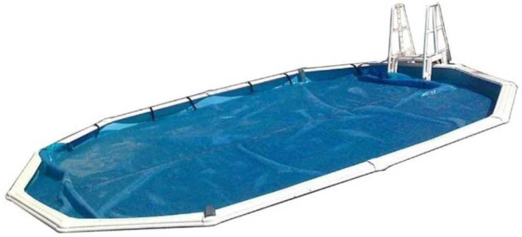 Особняком в списке материалов стоит солярная пленка. Материал представляет собой «слоеный пирог», состоящий из слоев полимерных материалов, между которыми закачан воздух. Благодаря тому, что полотно является плавающим, оно хорошо защищает воду от остывания.