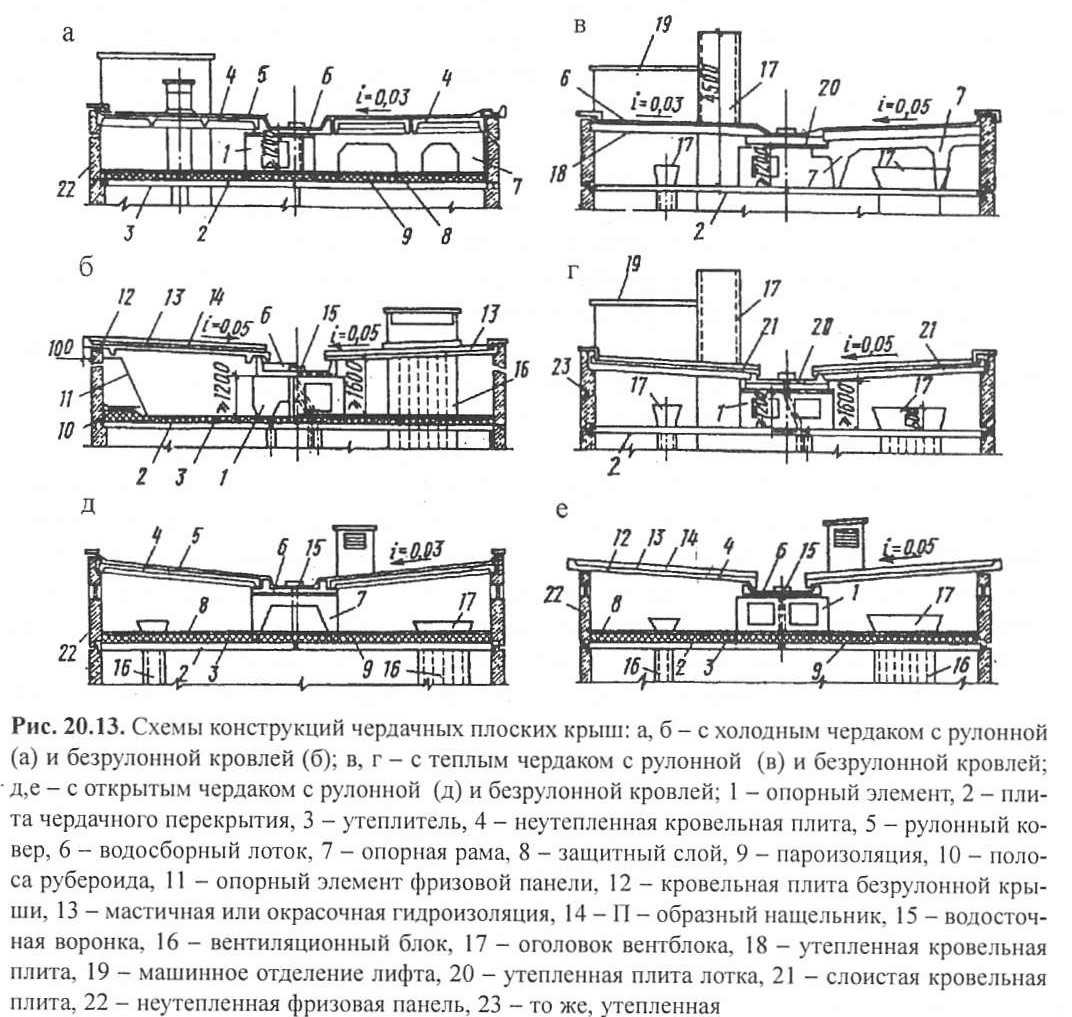 Технология устройства плоской кровли с чердаком подразумевает возможность использования двух видов: