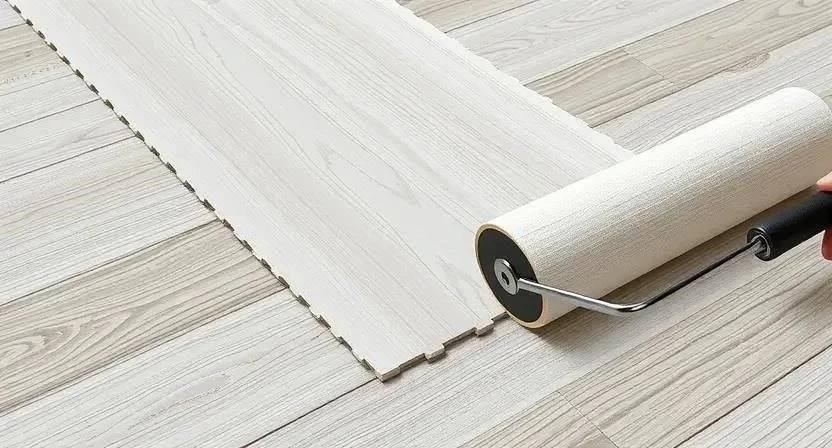 Укладка виниловой плитки: Разметка, нанесение клея, укладка плитки, прикатывание валиком, удаление излишков клея