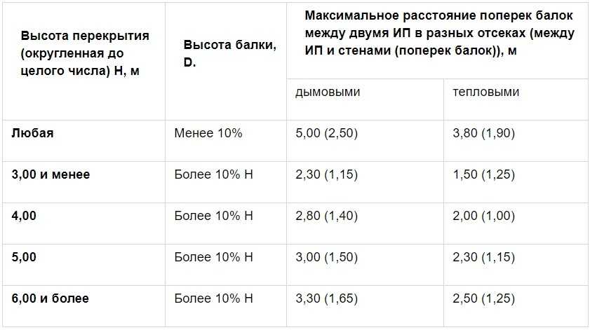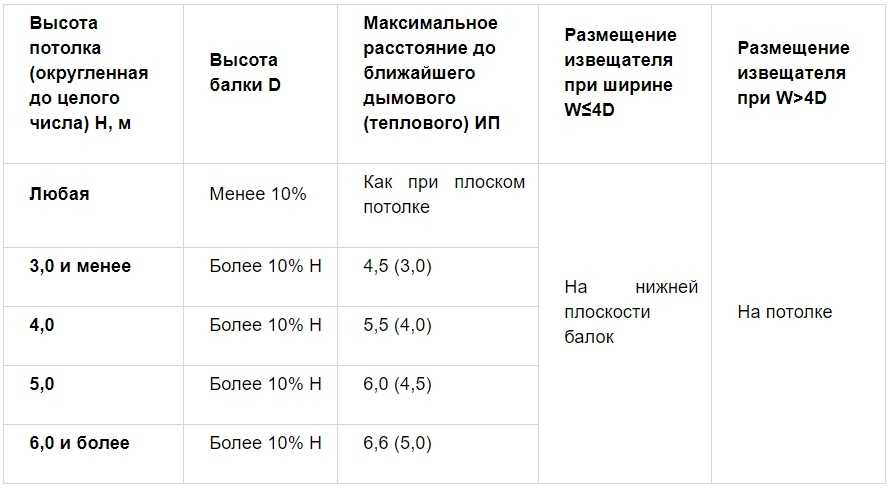 Возвращаются европейские требования по размещению точечных извещателей при наличии линейных балок, а также продольных и поперечных балок (п. 6.6.38) в отредактированном виде (Таблицы 3, 4) по сравнению с версией СП 5.13130 2009 года. Больше не нужно будет устанавливать извещатели в каждый отсек потолка шириной 0,75 м и более.