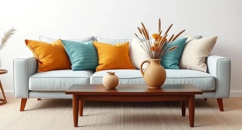 - Добавляйте акценты с помощью ярких подушек, картин или ваз.