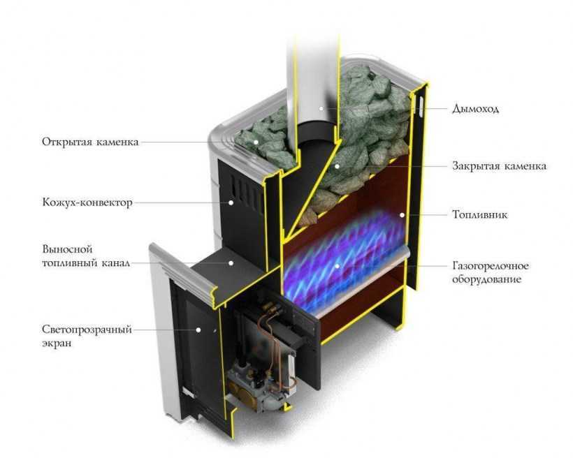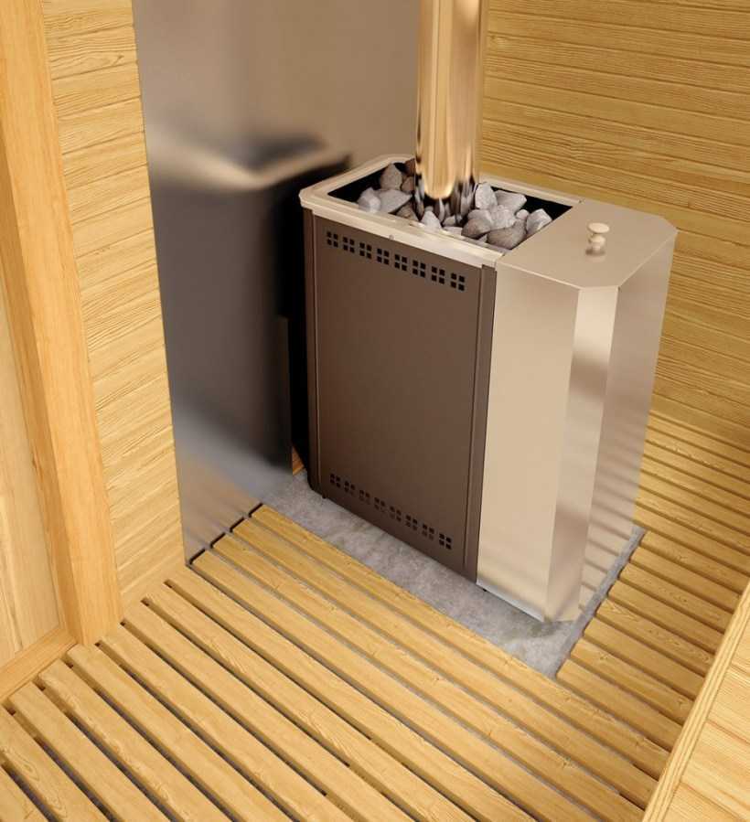 Главное внимание при выборе отопительного устройства уделяют конструкциям с выносной топкой, которую в целях безопасности выводят в смежное с парилкой помещение