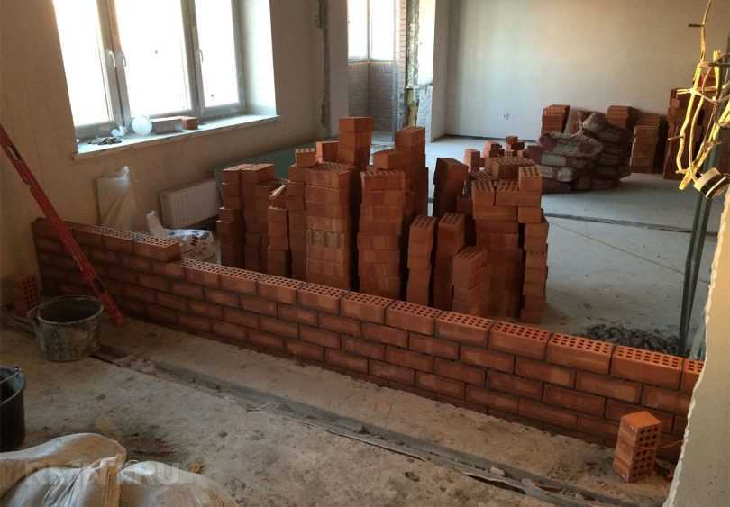 Чаще межкомнатные перегородки возводят в 1,2 кирпича или в 1,4 кирпича.
