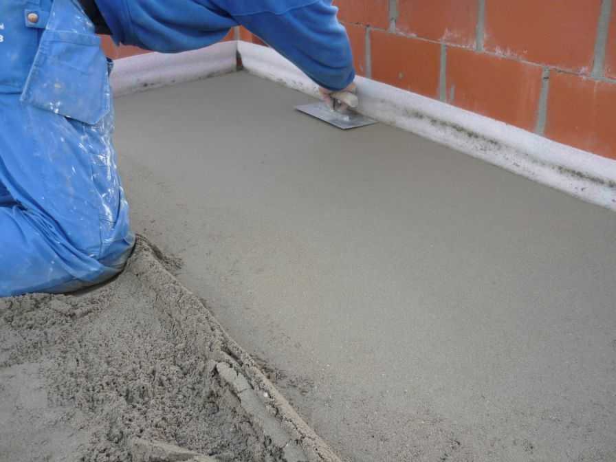 - Приготовленную смесь заливают ниже уровня пола на 1-2 см.