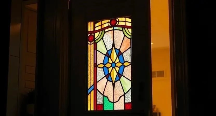 Работа с витражной пленкой или готовым витражом: Если вы используете витражную пленку, наклейте ее на стекло, следуя инструкциям производителя. Если у вас готовый витраж, аккуратно установите его в дверное полотно и зафиксируйте штапиками или герметиком.