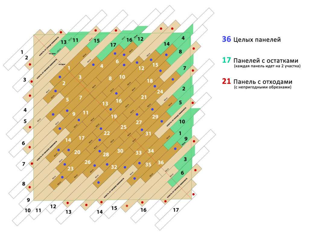 - какой метод будет применяться, причем все способы укладки ламината указывались выше, а наименьший расход имеется при использовании стандартной ориентации;