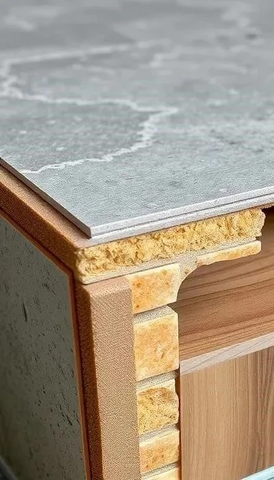 Модель 2: Керамогранит Kerama Marazzi City Stone (9мм) с подложкой XPS (5мм): Теплопроводность – 0.95 Вт/(мК), звукоизоляция – 20 дБ, цена – 1800 руб./м². Идеален для влажных помещений, требует обязательного использования с «теплым полом» для комфорта. Подложка XPS повышает теплоизоляцию и снижает нагрузку на перекрытие.