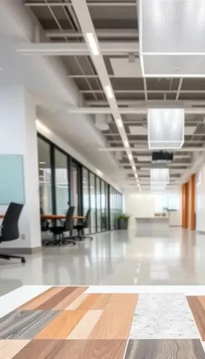 Для кабинетов с умеренной проходимостью подойдут ламинат (AC4), винил (LVT) или ковролин с плотностью ворса 300-400 г/м². В коридорах и зонах ресепшн, подверженных высокой проходимости, рекомендуется использовать коммерческий линолеум (33/34 класс), керамогранит или винил (SPC).