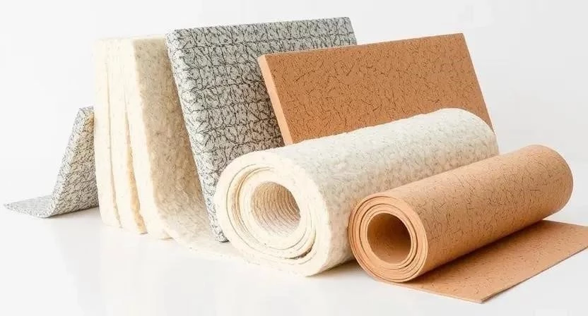 - Подложки: Пробковые, пенополистирольные, минеральные ватные. Обеспечивают базовый уровень звукоизоляции и выравнивают небольшие неровности.