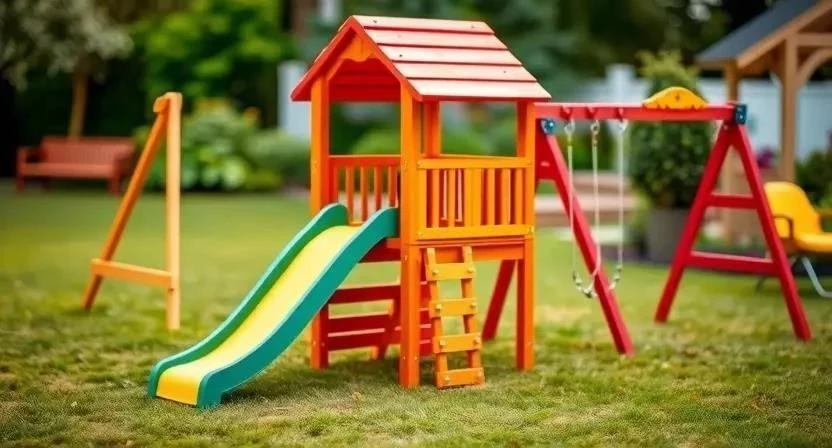 Выбор оборудования зависит от возраста и интересов ребенка. Для самых маленьких подойдут песочницы, небольшие горки и качели. Детям постарше понравятся более сложные конструкции: домики, лазалки, спортивные комплексы. При выборе материалов отдавайте предпочтение экологически чистым и безопасным вариантам: дерево, пластик, резина. Важно, чтобы все элементы были прочными, устойчивыми и не имели острых углов или выступающих деталей.