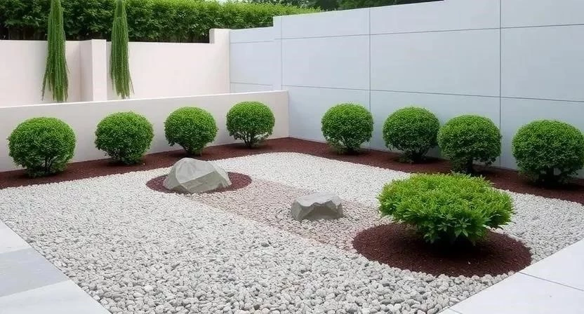 - Японский стиль: Минимализм, использование камней, воды, мха и бамбука.