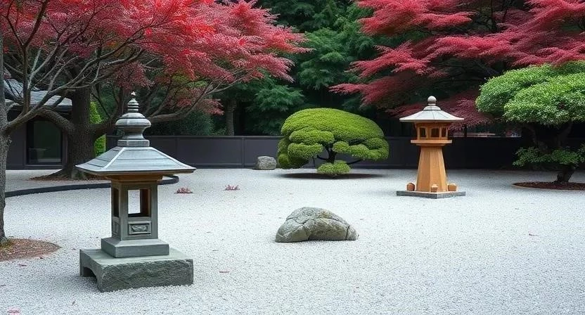 - Японский сад: Минимализм, камни, вода, мох и тщательно подобранные растения.