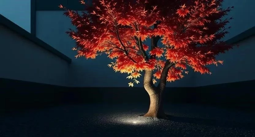 Создание драматического эффекта достигается за счет использования направленного света. Выделение красивых форм подчеркивает уникальность растений. Я люблю использовать подсветку для деревьев с необычной формой кроны – это выглядит очень эффектно.