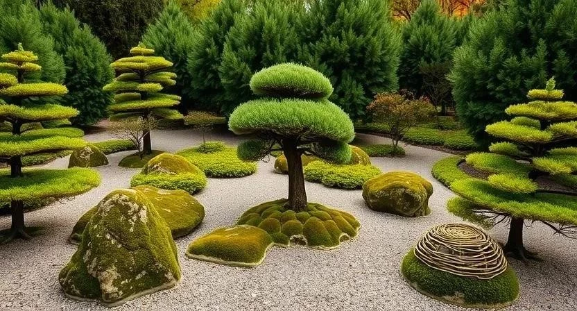 Пример из моего опыта: Я реализовал проект ландшафтного дизайна в японском стиле, где главным акцентом стали сосны и можжевельники. Использовал технику бонсай для придания деревьям особой формы и выразительности. Получилось очень красиво и атмосферно!