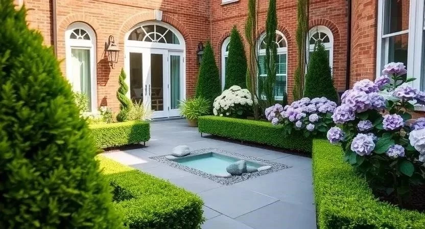 - Пейзажный стиль: имитация естественного ландшафта, плавные линии, обилие растений.