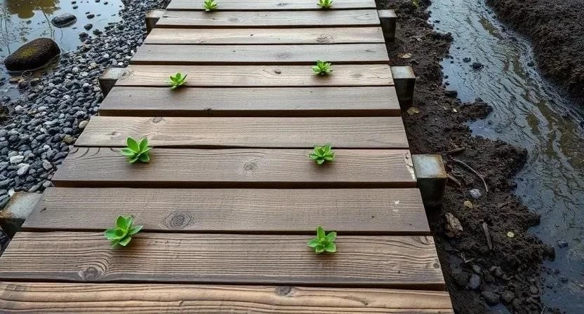 При устройстве садовых дорожек на заболоченной почве необходимо обеспечить хороший дренаж под дорожками. В качестве материалов для дорожек можно использовать дерево, камень и плитку. Деревянные дорожки выглядят естественно и гармонично вписываются в ландшафт, но требуют регулярной обработки защитными составами. Каменные и плиточные дорожки более долговечны, но могут быть скользкими во время дождя.