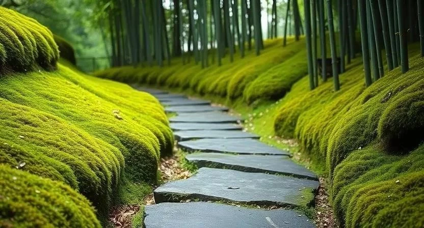 - Сад мха (коке-но-нива): Покрыт густым слоем мха, создающим ощущение древности и умиротворения.