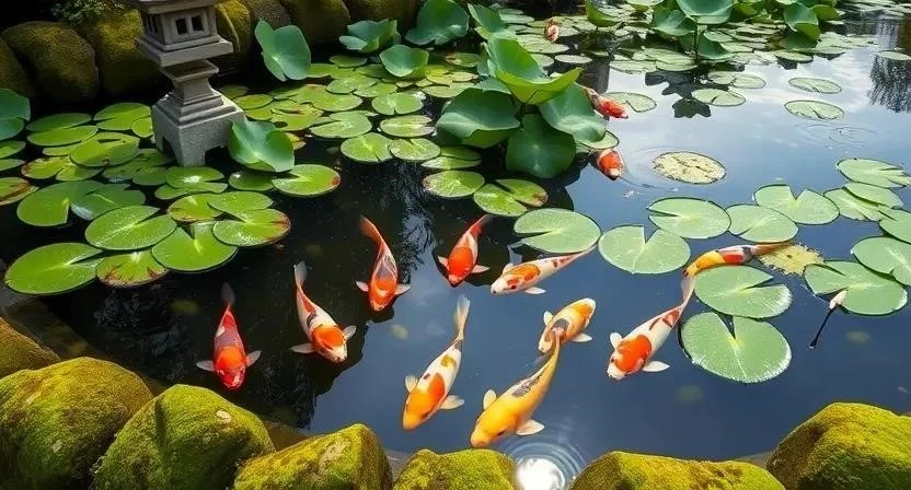 - Сад пруда (чисуй-но-нива): Центральным элементом является пруд с карпами кои, окруженный камнями и растениями.