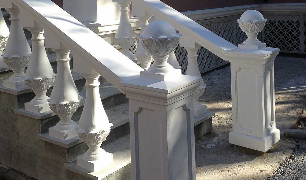 Конечным этапом является финишная отделка декоративных элементов с применением грунтовки и последующей покраски. Чтобы продлить срок службы больших элементов над ними монтируют отливы.