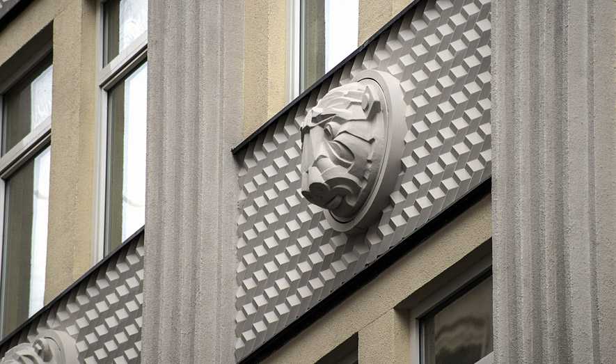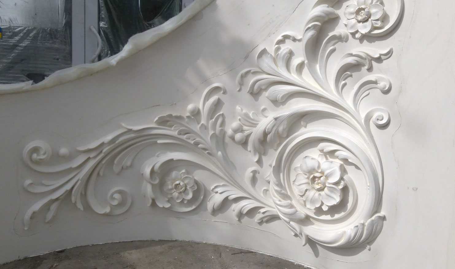 - Обратную сторону гипсовых элементов обязательно следует ровнять и тщательно удалять пыль. Работайте очень внимательно, помните, что упавшая с фасада гипсовая лепнина восстановлению не подлежит. А многие элементы могут делать вручную в единственном экземпляре, это значительно усложняет восстановление первоначального вида фасада здания.