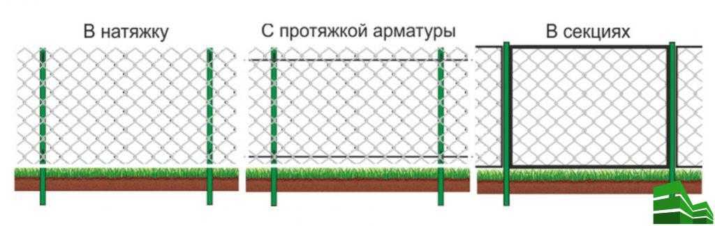 Рабицу натягивают со столба, расположенного в углу. Ее навешивают на столбы и закрепляют скобами. Еще можно привязать проволокой или приварить сварочным аппаратом.