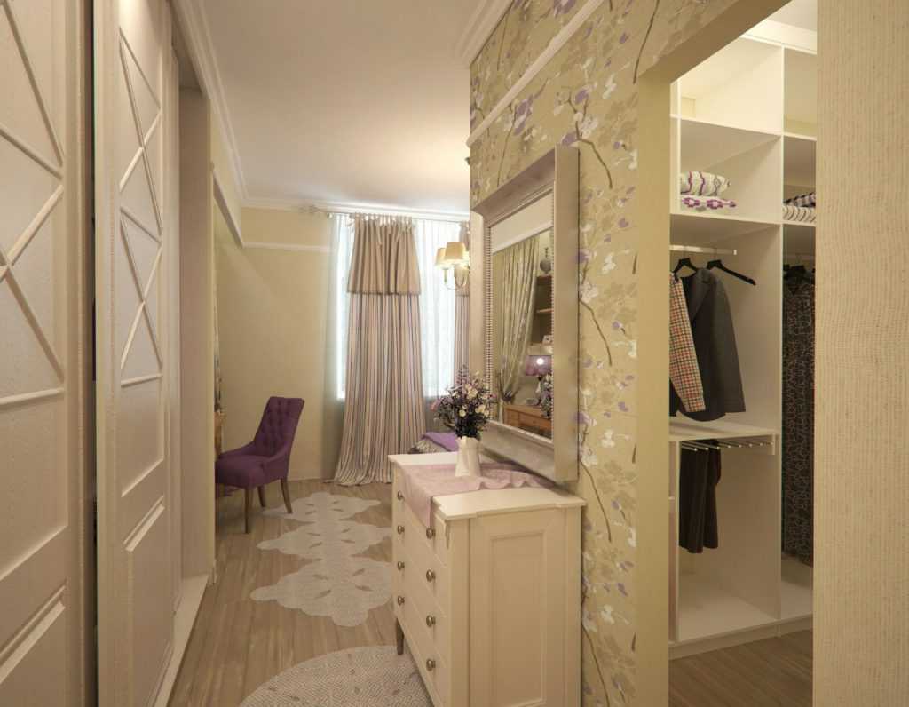 Светлые обои и зеркало во весь рост зрительно увеличат пространство.