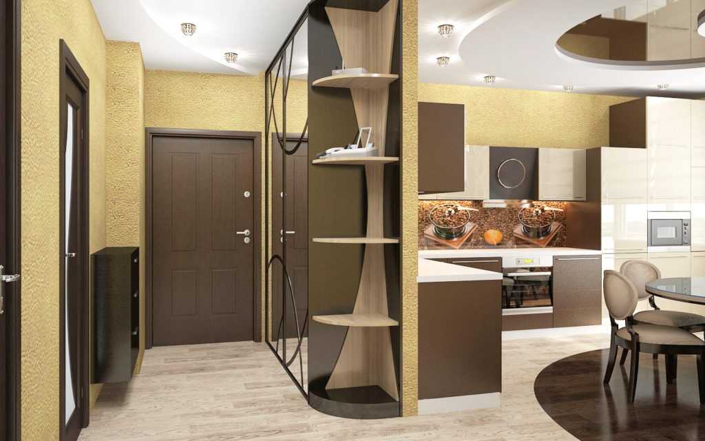 - Проходные. Распространенный вариант в малогабаритных квартирах, позволяющий соединить все комнаты. В этом случае нужно правильно зонировать пространство, чтобы отделить проходную зону от входной.