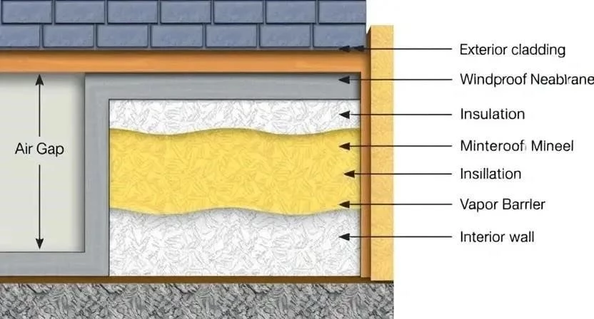- Установка облицовочного материала: установите облицовочный материал, оставляя зазор для вентиляции.