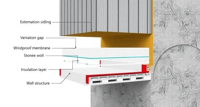 Вентилируемый фасад – это конструкция, состоящая из нескольких слоев, обеспечивающих надежную тепло- и гидроизоляцию. Он включает в себя несущую стену, утеплитель, ветрозащитную мембрану, воздушный зазор и облицовочный материал. Принцип работы основан на создании воздушного пространства между утеплителем и облицовкой, которое обеспечивает циркуляцию воздуха и удаление влаги. Преимуществами вентилируемого фасада являются долговечность, энергоэффективность и возможность использования различных облицовочных материалов. Недостатком может быть более высокая стоимость по сравнению с традиционными методами утепления.