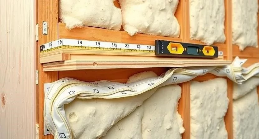 - Укладка утеплителя: Уложите утеплитель в каркас, плотно прижимая его к стене.