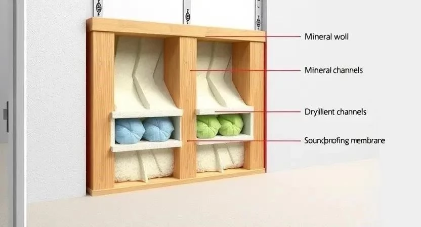 4. Укладка звукоизоляционного материала: Заполните пространство между профилями звукоизоляционным материалом. (Время: 1-2 часа)